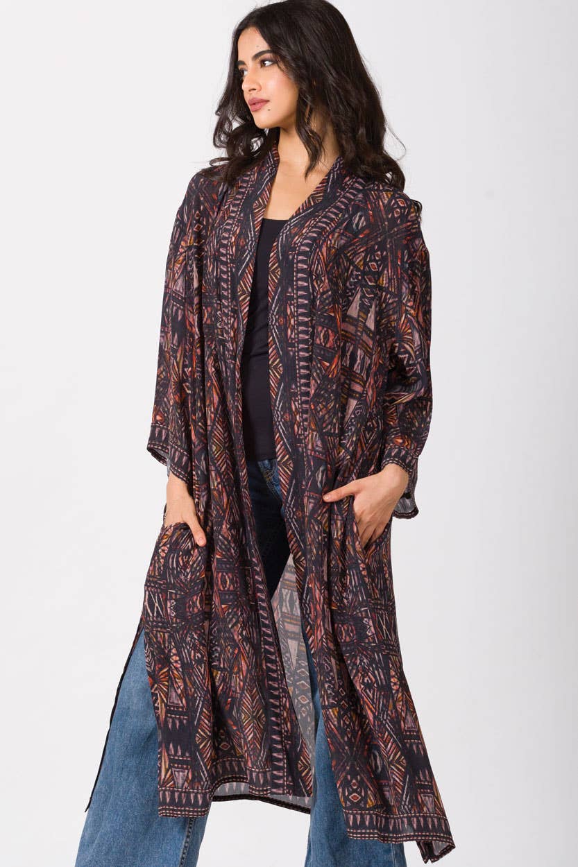 One size fits most, making it a versatile addition to any wardrobe. Enjoy the seamless blend of heritage and modernity with the Sachita Kimono.