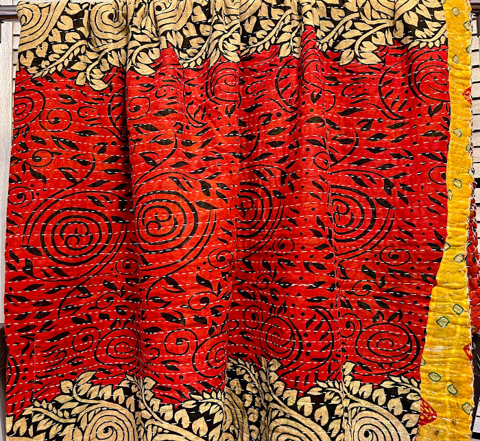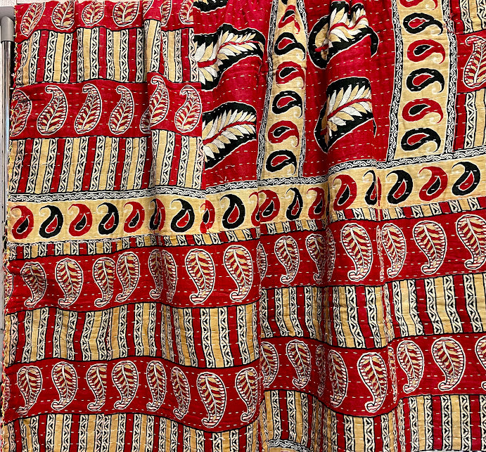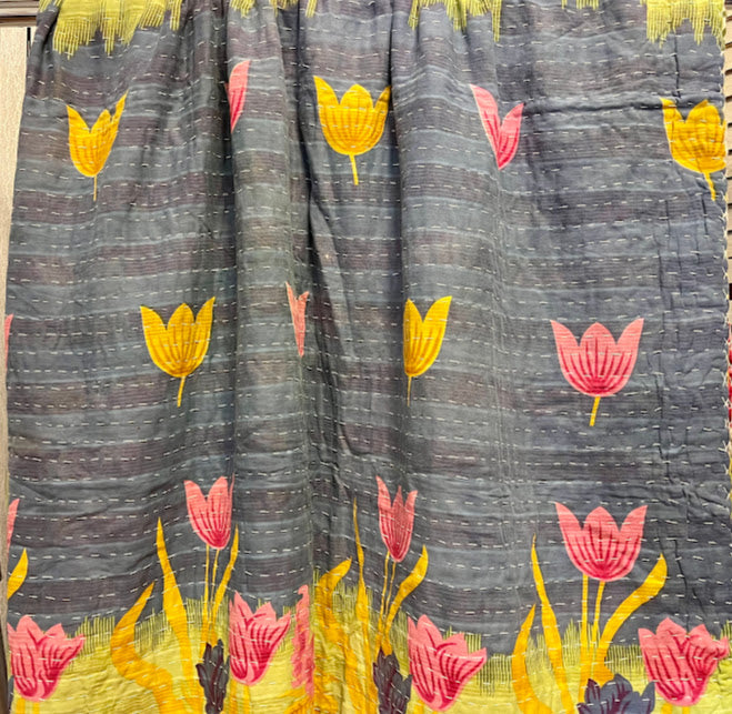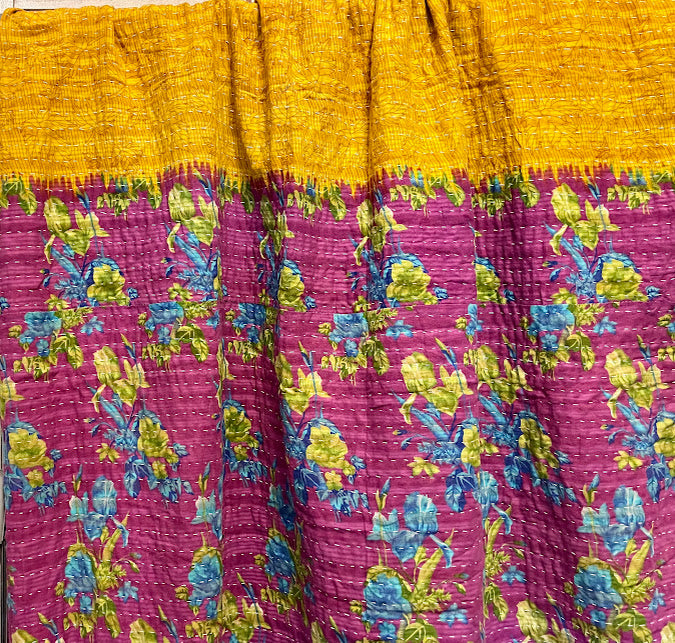 Imagine the vibrant streets of India, where the colors of saris dance in the sunlight and the air is filled with the hum of bustling markets. Our Reversible Kantha Throw Blankets capture this essence, each one a unique masterpiece created by stitching together reclaimed saris using the traditional kantha sewing technique. These throws are not merely blankets; they are a celebration of artistry and sustainability.